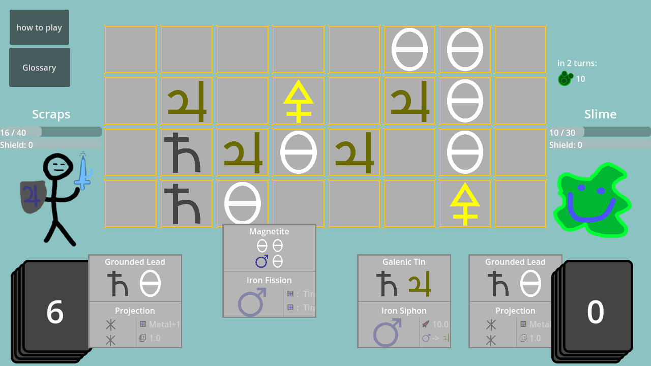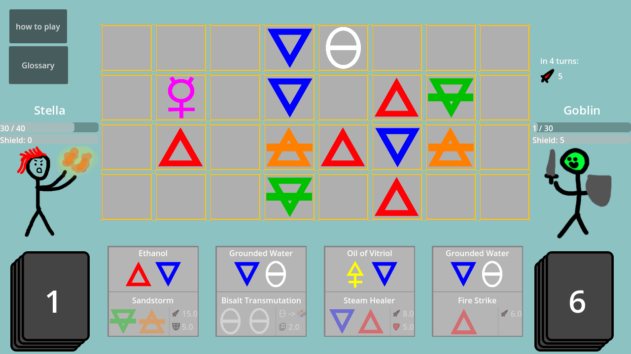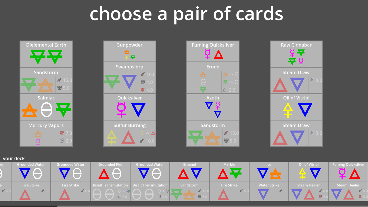 Very cool! The double element/spell cards are a nice mechanic. And I do like how the game grudgingly has graphics. XD